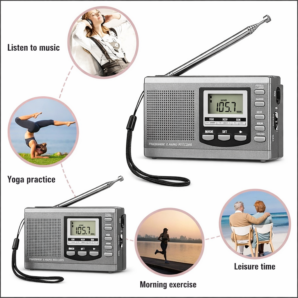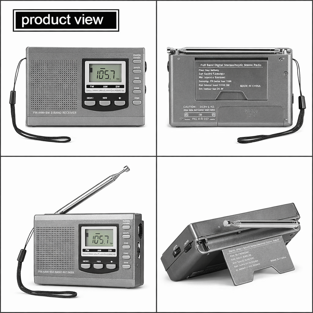 The Voxl V310 is a compact battery operated radio built for easy daily listening and dependable backup use. With AM/FM/SW (shortwave) coverage, DSP digital tuning, and a clear LCD frequency display with clock, it’s a practical portable emergency radio for home, travel, and emergency kits—no apps, no Wi-Fi, just straightforward radio.
